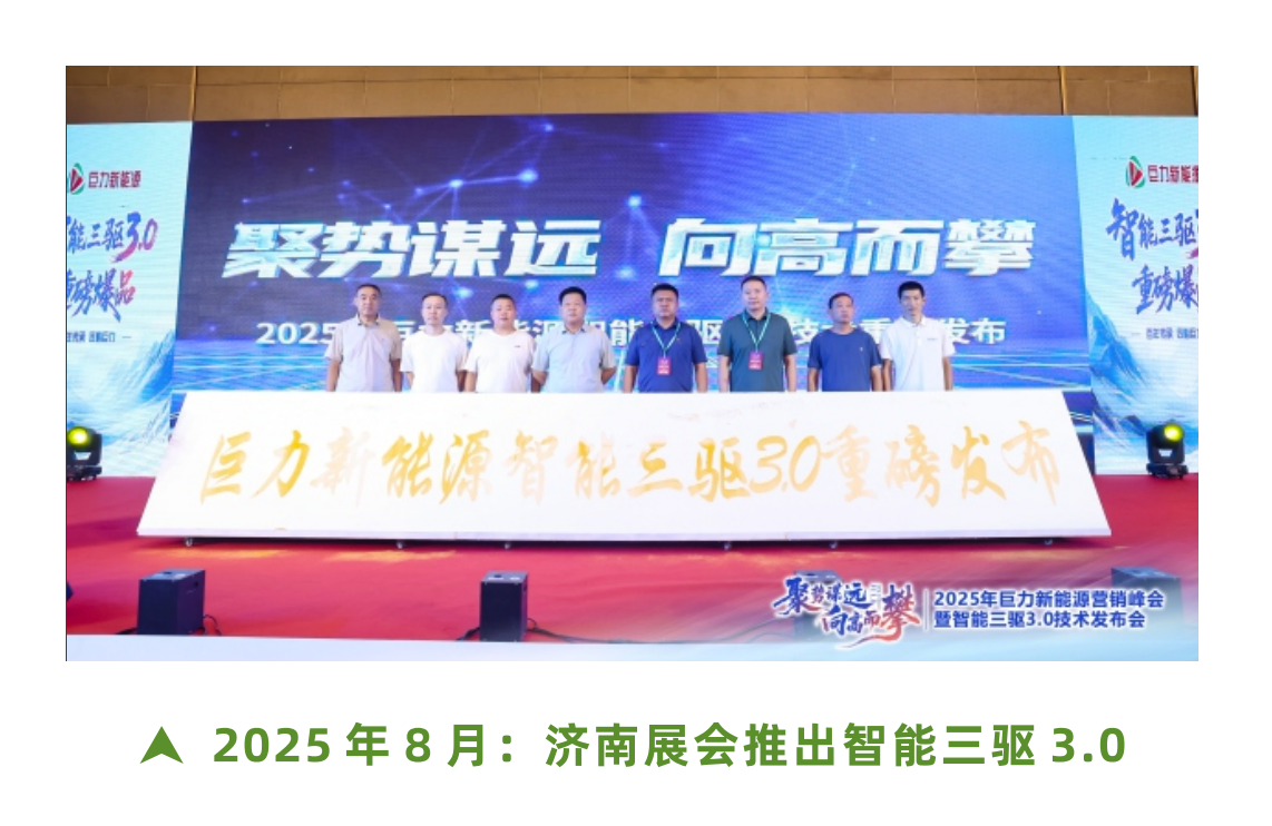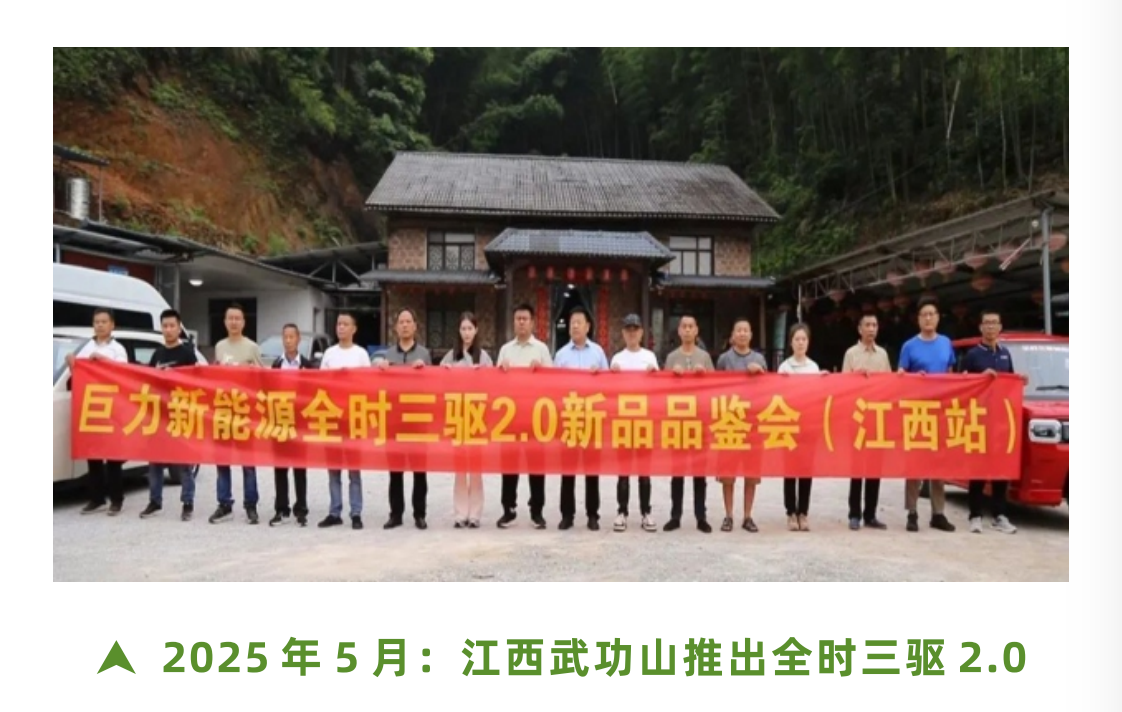 当前,巨力新能源已经基于三轮驱动专利技术,开发出家用三驱篷车系列;商用载客三驱篷车系列;客货两用三驱皮卡系列;载货三驱轻卡系列,三驱休闲篷车系列;完全满足山地丘陵及平原载货客户的全部应用场景及对动力的需求。